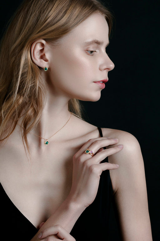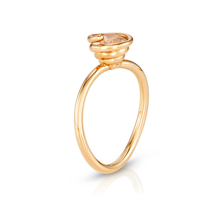 Deep green faceted topaz is the focal point of this graceful fine jewelry ring design. The lovely scroll setting is complemented by the flowing curves of a gently twisting band, all in 14k yellow gold. Perfect alone or stacked. 6mm round loyal green topaz.