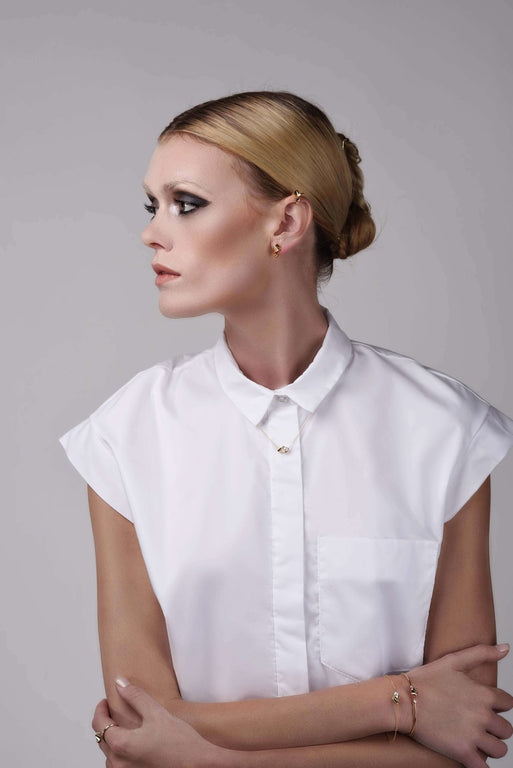 The combination of the geometric onda element and the romantic pearl (4.5mm akoya cultured pearl) is in perfect harmony in this chain bracelet. This bracelet lightly falls over your wrist.10 x 10 x 8 mm, 6.5 inch chain. 14k yellow gold.