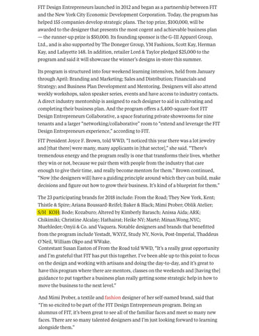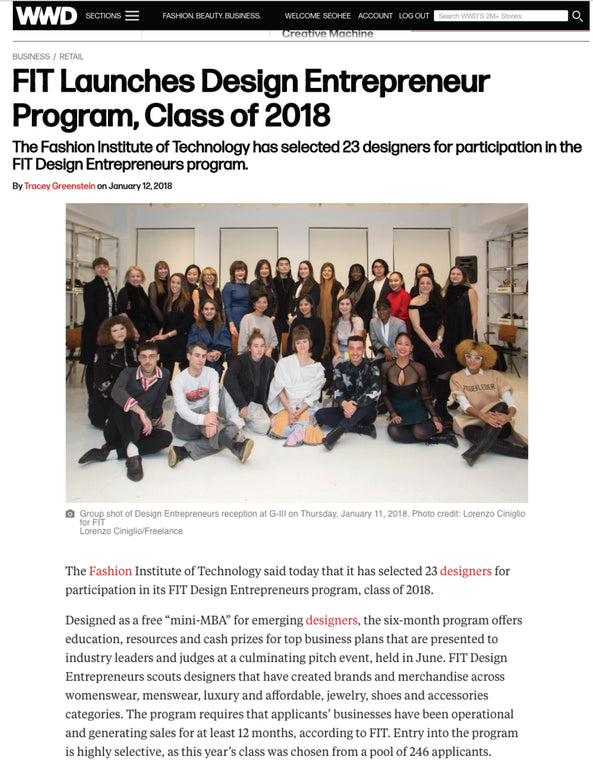 The Fashion Institute of Technology said today that it has selected 23 designers for participation in its FIT Design Entrepreneurs program, class of 2018.