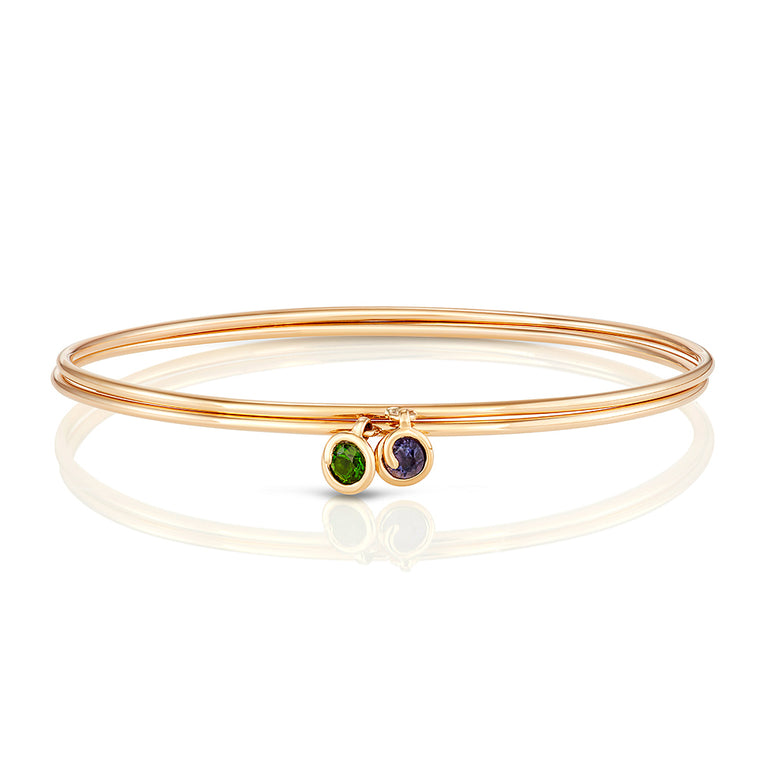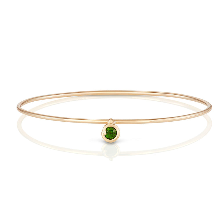 Chrome Diopside is beautifully ensconced in a swirl of 14k yellow gold in thisfine jewelry charm bracelet. The succinctly feminine design is simple enough for everyday and elegant enough for evening. 4mm round Chrome Diopside.