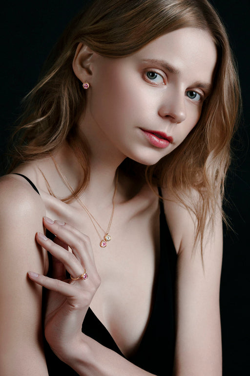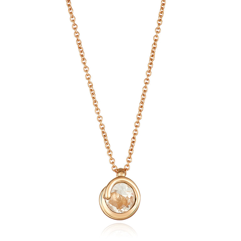 This luminous pendant features a white faceted topaz radiantly set in a swirl of 14k yellow gold. The scrollfine jewelry pendant suspends gracefully on a 14k yellow gold chain, and is the perfect singular for anything you wear. 6mm round white topaz. 18 inch cable chain.